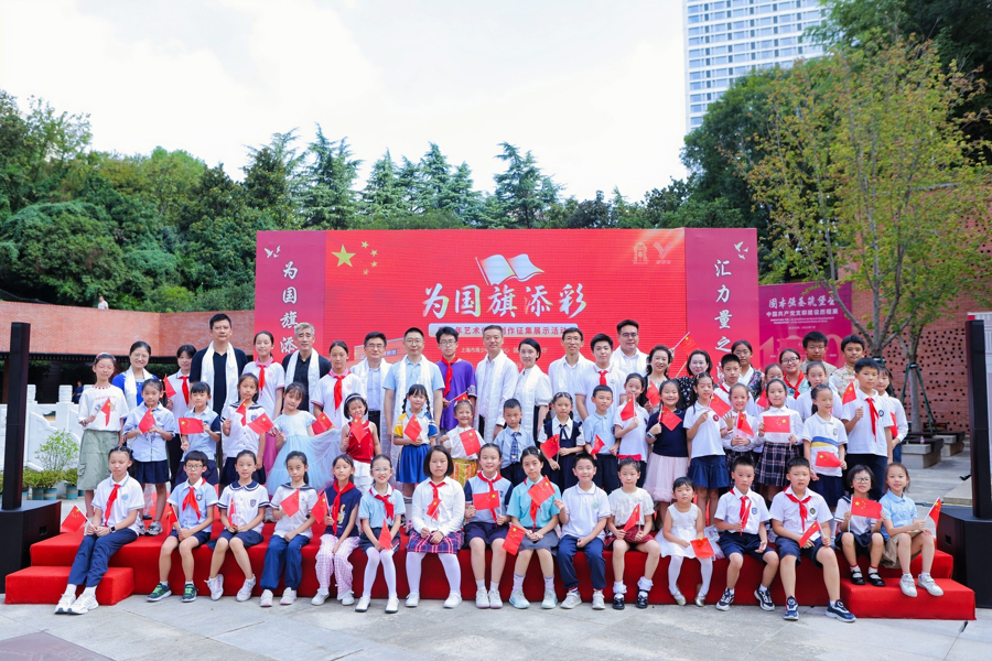 在中华人民共和国成立76周年、新疆维吾尔自治区成立70周年到来之际,由中共四大纪念馆国旗教育展示厅与上海市青少年活动中心联合主办的“为国旗添彩”青少年艺术作品创作征集展示活动,9月27日上午在中共四大纪念馆国旗广场举行。